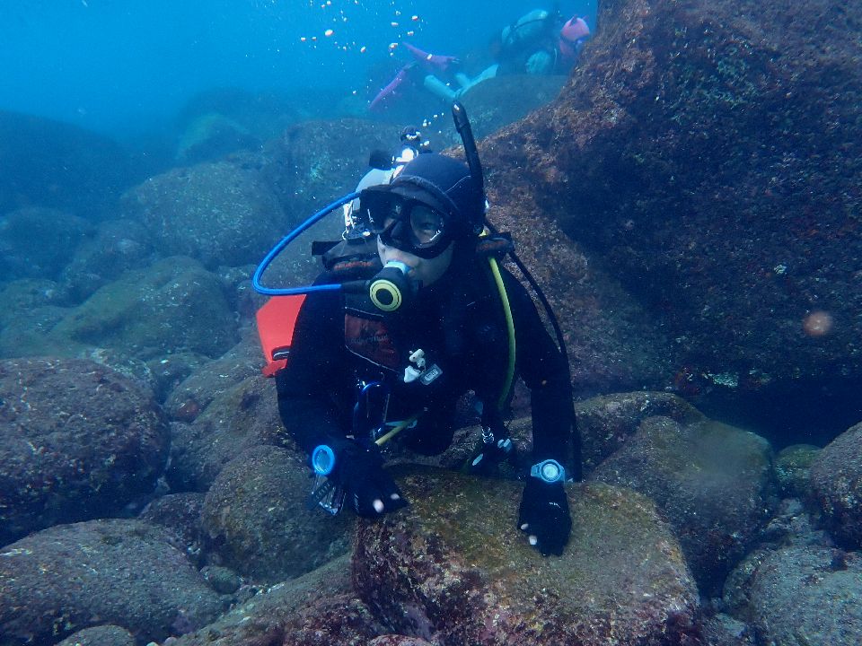 ・気温 19℃ (12:00) ・水温 16℃ ・波高 1,0m(EN/EX) 沖波 1,5m ・風 北北西 1m/s (12:00) ・潮 干潮 10:31(30cm) 満潮 16:45(154cm) 大潮 ・流れ 流れ なし うねり あり ・透視度 8m〜10m ・コメント 昼の干潮が |