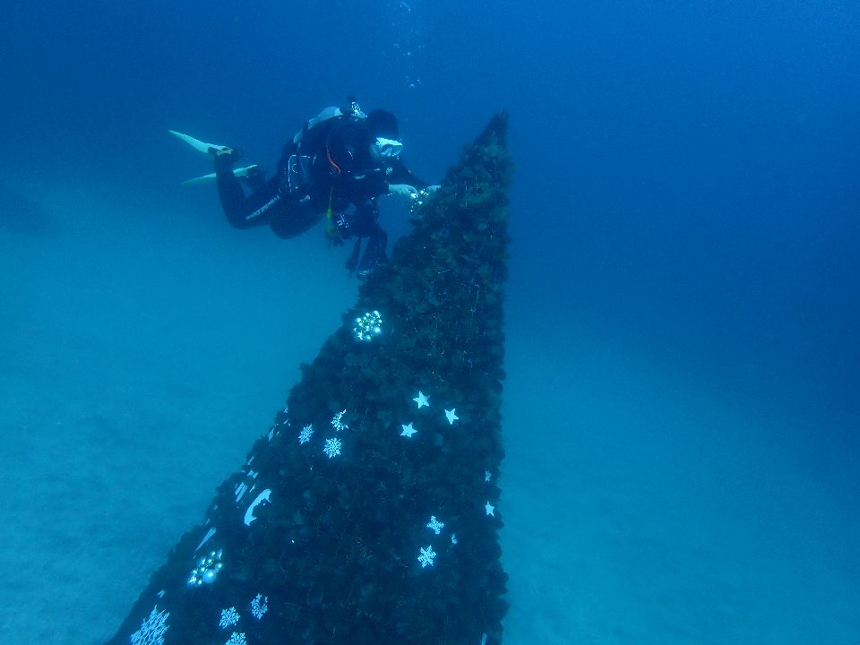 ・気温 15℃ (12:00) ・水温 22℃ ・波高 0,5m(EN/EX) 沖波 1,5m後3,0m ・風 北北東 1m/s (12:00) ・潮 干潮 06:56(78cm) 満潮 13:32(136cm) 若潮 ・流れ 流れ 少し うねり 少し ・透視度 8m〜12m ・コメント クリスマスモード |