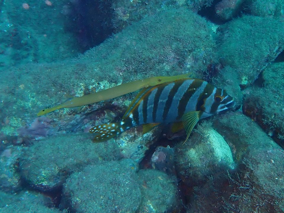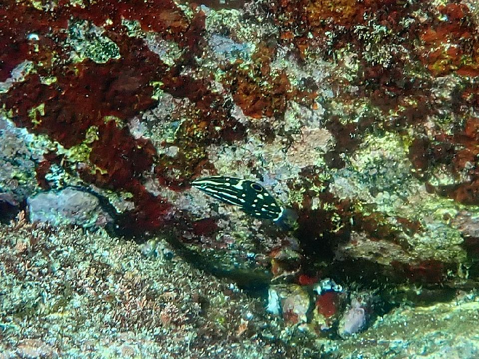 ・気温 23℃ (12:00) ・水温 19℃ ・波高 0,3m(EN/EX) 沖波 2,5m後1,5m ・風 北北東 2m/s (12:00) ・潮 干潮 14:50(23cm) 満潮 07:07(134cm) 小潮 ・流れ 流れ なし うねり 少し ・透視度 6m〜8m ・コメント 川奈も久しぶり |