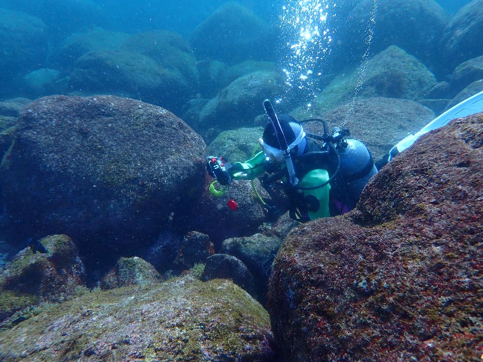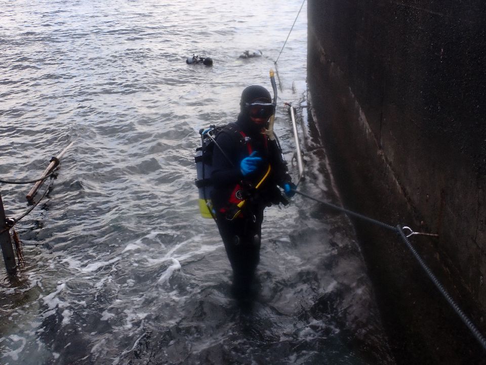 ・気温 13℃ (12:00) ・水温 19℃ ・波高 0,2m(EN/EX) 沖波 3,0m後2,5m ・風 西南西 4m/s (12:00) ・潮 干潮 03:08(34cm) 満潮 10:48(135cm) 小潮 ・流れ 流れ なし うねり なし ・透視度 8m〜12m ・コメント ドライ水没 |