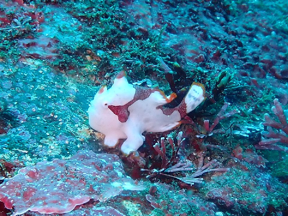 ・気温 32℃ (12:00) ・水温 24℃〜27℃ ・波高 0,3m(EN/EX) 沖波 1,5m ・風 東南東 2m/s (12:00) ・潮 干潮 10:52(18cm) 満潮 18:01(152cm) 大潮 ・流れ 流れ 少しあり うねり 少し ・透視度 8m〜15m ・コメント ベニカエルアンコウ復活 |