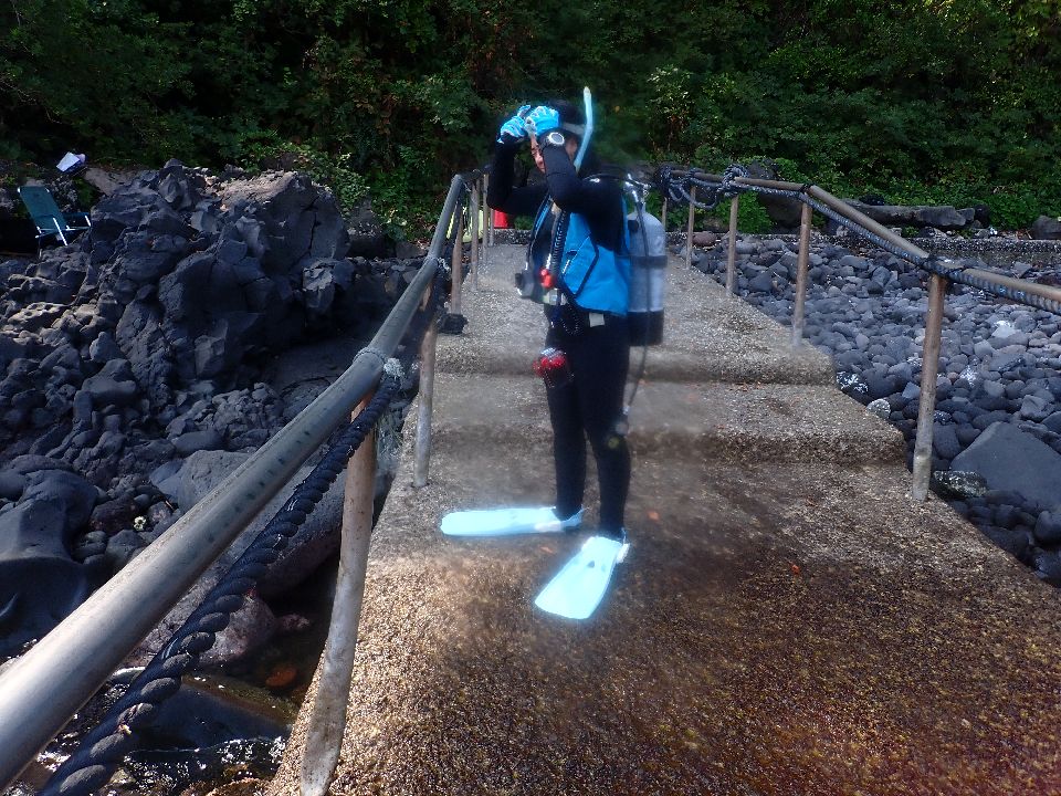 ・気温 32℃ (12:00) ・水温 24℃〜26℃ ・波高 0,5m(EN/EX) 沖波 1,5m ・風 西南西 2m/s (12:00) ・潮 干潮 11:13(5cm) 満潮 18:26(155cm) 大潮 ・流れ 流れ あり うねり あり ・透視度 10m〜15m ・コメント ナイトロックス講習 |