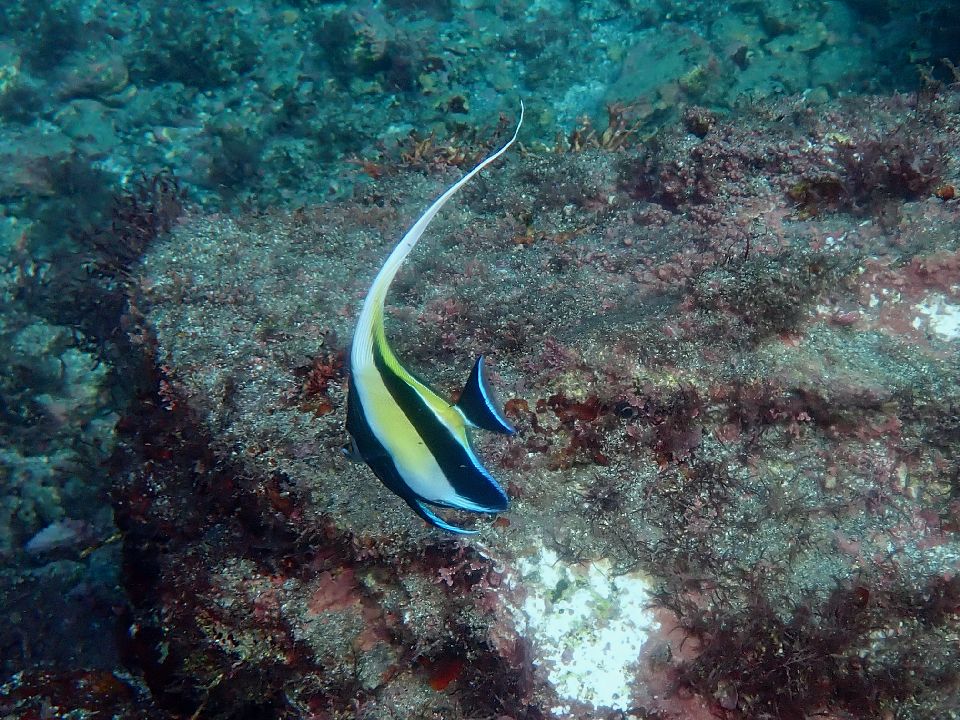 ・気温 28℃ (12:00) ・水温 24℃〜26℃ ・波高 0,1m(EN/EX) 沖波 2m後2,5m ・風 西南西 7m/s (12:00) ・潮 干潮 13:15(117cm) 満潮 10:19(121cm) 小潮 ・流れ 流れ なし うねり 少し ・透視度 8m〜12m ・コメント 久々のダイビング |