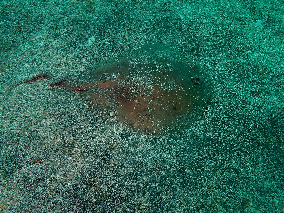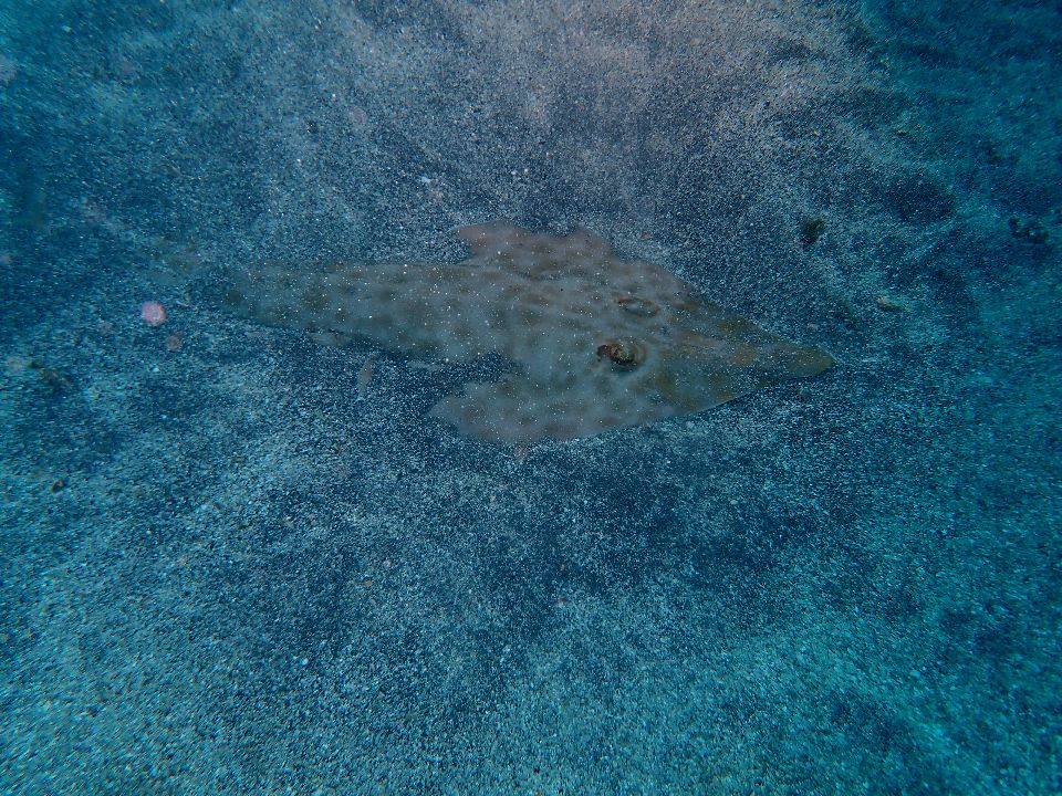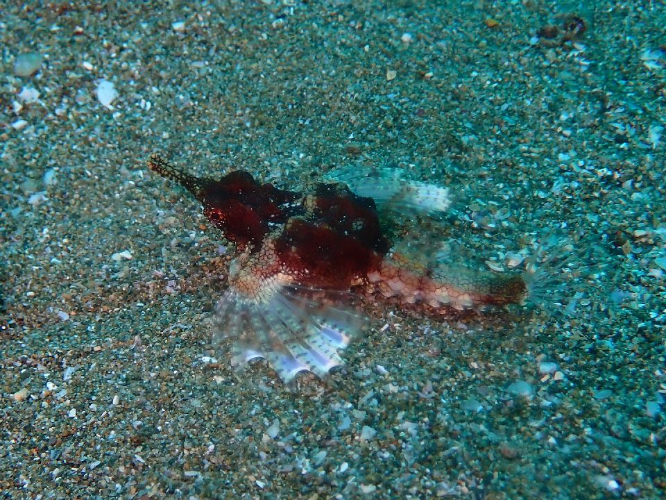 ・気温 29℃ (12:00) ・水温 21℃〜22℃ ・波高 0,1m(EN/EX) 沖波 1,5m ・風 西南西 3m/s (12:00) ・潮 干潮 08:54(14cm) 満潮 16:21(145cm) 中潮 ・流れ 流れ 少しあり うねり なし ・透視度 8m〜12m ・コメント 今日も砂地横断してみました |