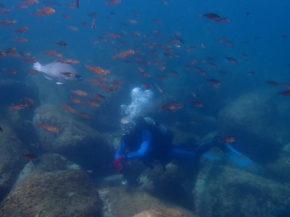 ・気温 20℃ (12:00) ・水温 16℃〜17℃ ・波高 0,3m(EN/EX) 沖波 1,5m ・風 東南東 3m/s (12:00) ・潮 干潮 13:06(-4cm) 満潮 05:39(153cm) 中潮 ・流れ 流れ なし うねり なし ・透視度 8m〜12m ・コメント 透明度良くなったり悪くなったり |