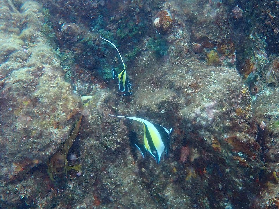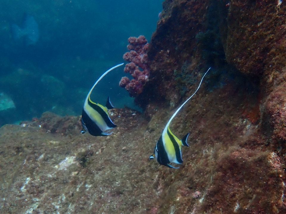 ・気温 32℃ (12:00) ・水温 20℃〜26℃ ・波高 0,2m(EN/EX) 沖波 1,5m ・風 西 2m/s (12:00) ・潮 干潮 09:38(23cm) 満潮 17:02(153cm) 中潮 ・流れ 流れ 少し うねり なし ・透視度 8m〜15m ・コメント 水温・透明度回復 |