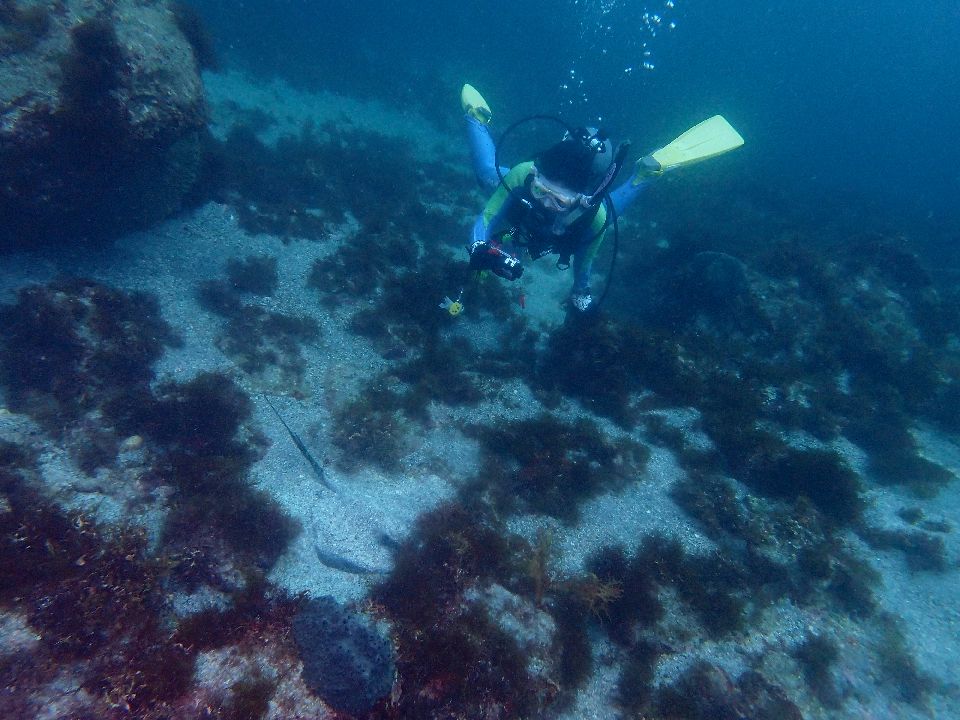 ・気温 11℃ (12:00) ・水温 15℃ ・波高 0,3m(EN/EX) 沖波 1,5m後2,5m ・風 北西 2m/s (12:00) ・潮 干潮 11:01(84cm) 満潮 16:22(146cm) 大潮 ・流れ 流れ ほんの少し うねり 少し ・透視度 15m ・コメント なかなか見つかりせん |