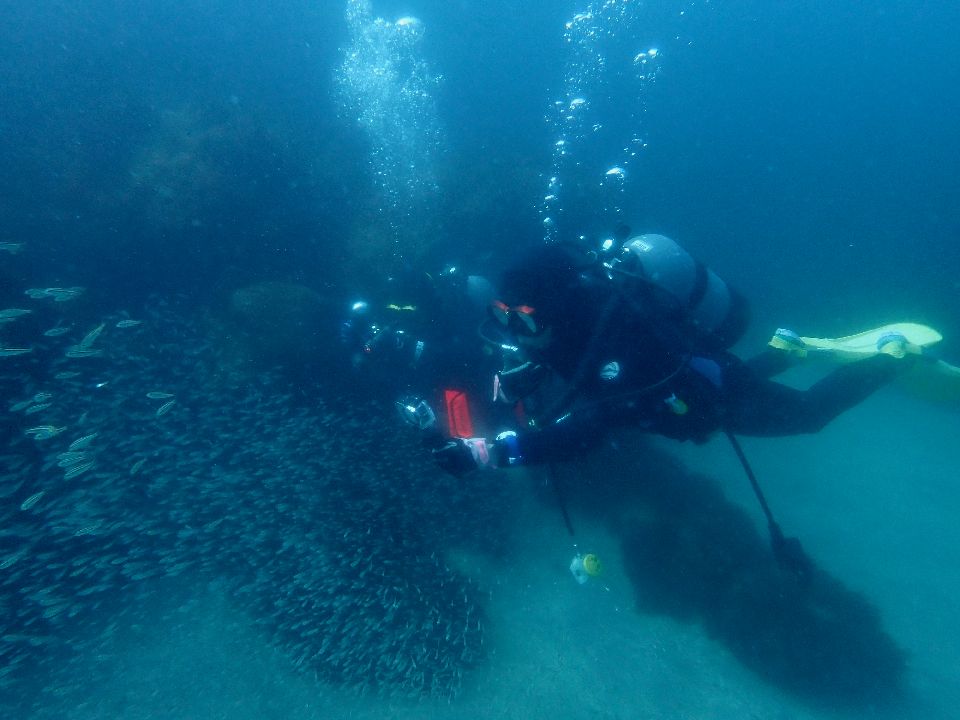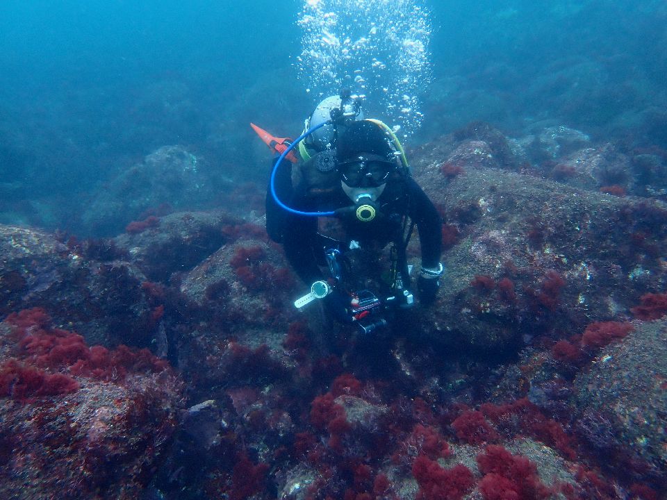 ・気温 23℃ (12:00) ・水温 15℃〜17℃ ・波高 0,0m(EN/EX) 沖波 1,5m ・風 南東 2m/s (12:00) ・潮 干潮 12:43(11cm) 満潮 05:26(144cm) 中潮 ・流れ 流れ 場所によって うねり ほんの少し ・透視度 5m〜15m ・コメント 冷たいエリアもあった |