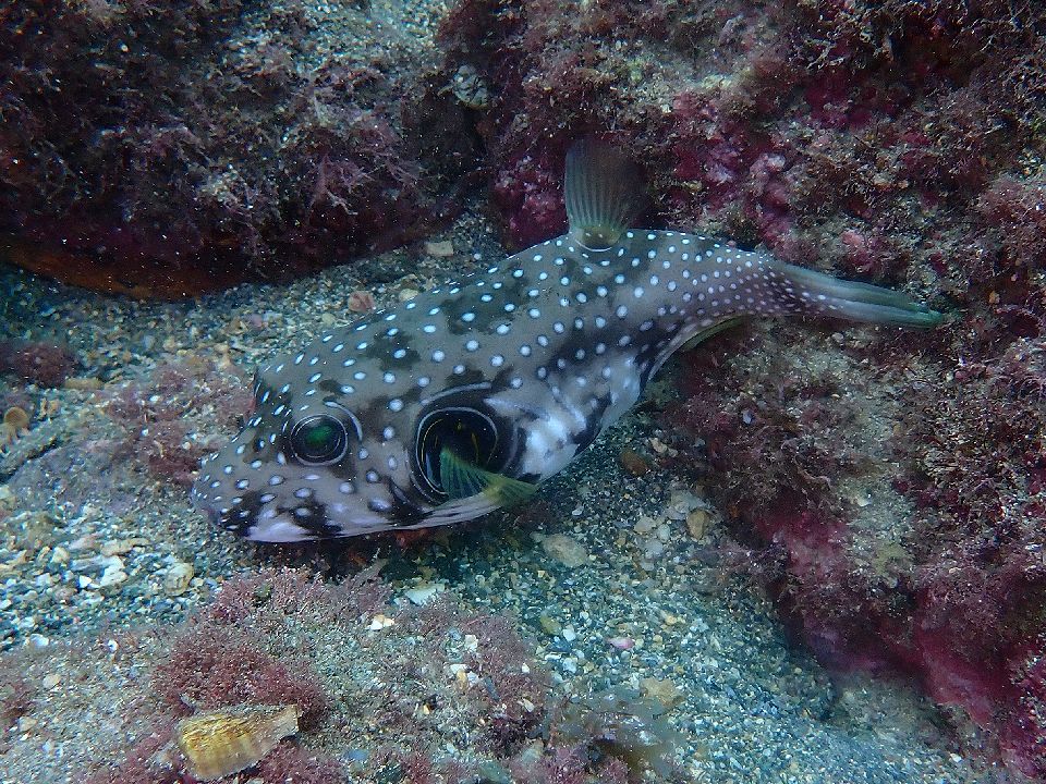・気温 15℃ (12:00) ・水温 18℃ ・波高 0,3m(EN/EX) 沖波 1,5m後2,0m ・風 北西 2m/s (12:00) ・潮 干潮 15:41(98cm) 満潮 10:10(131cm) 小潮 ・流れ 流れ 少しあり うねり 少し ・透視度 10m〜15m ・コメント 新顔登場? |