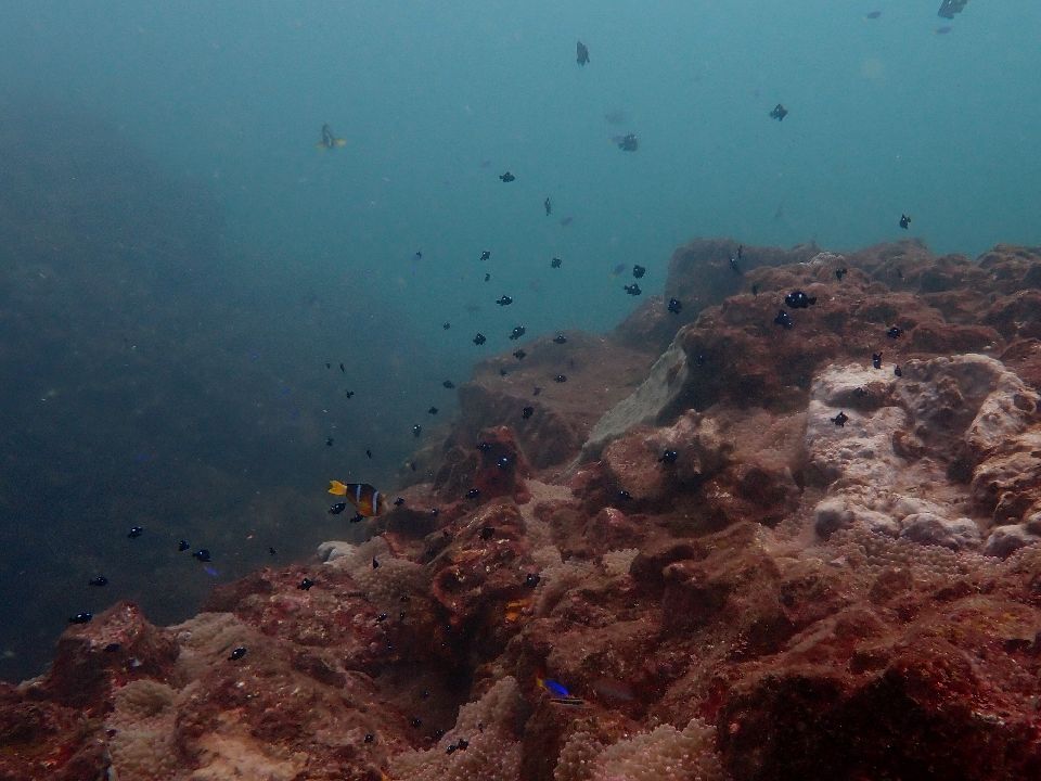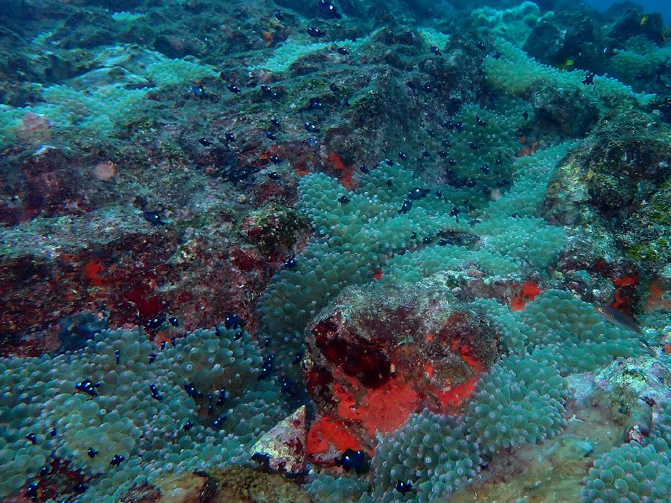 ・気温 26℃ (12:00) ・水温 22℃〜25℃ ・波高 0,5m(EN/EX) 沖波 1,5m後2.0m ・風 北 3m/s (12:00) ・潮 干潮 11:13(8cm) 満潮 18:31(151cm) 大潮 ・流れ 流れ あり うねり あり ・透視度 8m〜12m ・コメント 掻き回されて白っぽい |