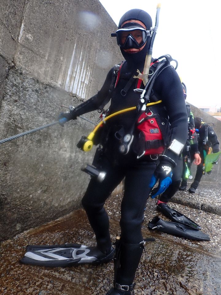 ・気温 9℃ (12:00) ・水温 16℃〜17℃ ・波高 0,5m(EN/EX) 沖波 1,5m ・風 東南東 2m/s (12:00) ・潮 干潮 12:46(81cm) 満潮 07:31(141cm) 中潮 ・流れ 流れ なし うねり 少し ・透視度 15m ・コメント ドライにも慣れて(^^;) |