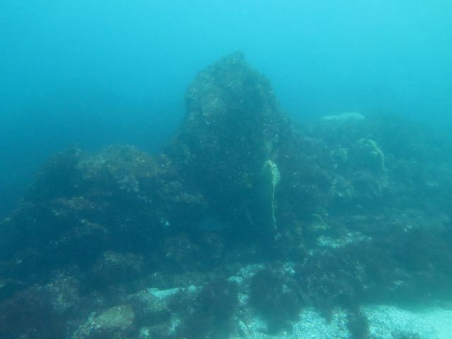 そびえ立つ岩の上にイソギンチャク 中腹の抜けられる所の岩