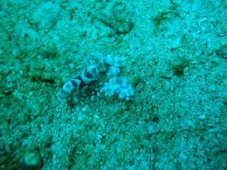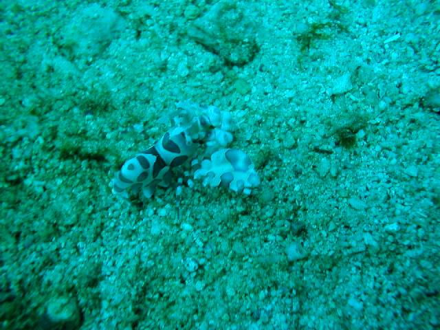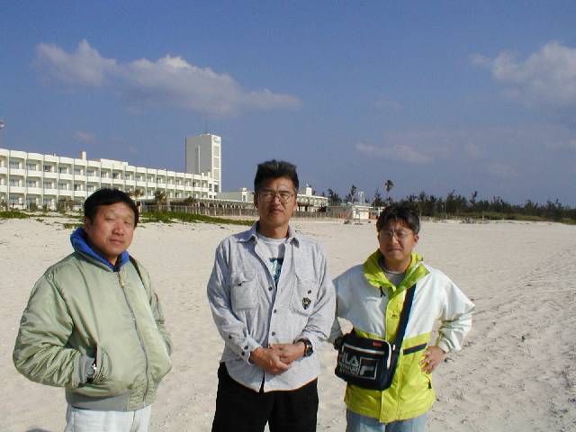 2002年久米島ツアー12月30日〜1月3日まで、沖縄の久米島を楽しんで来ました。到着した30日から良い天気に恵まれたのですが、風が強く吹いていて、 寒さに参りました。しかし、ドライスーツ組にとっては快適な環境です。 気温が18℃で水温23℃ですから・・ 初日からベテランということで、一気に深場のピグミーシーホースを見てきました。 スミレナガハナダイを横目に更に深場へ落ちていき、1人1分間位を限度にピグミーを 見た!でもあまりにも小さすぎて我々中高年組には非常に見えづらかったです。(老眼ってこと?) デジカメも操作不慣れの為、うまく撮れず、ビデオなんかは最初から諦め。 フリソデエビやキンチャクガニ狙いのダイビング。オラウンタークラブやシンデレラウミウシ(仮称)など 小物も沢山登場。ふと上を見上げれば、イソマグロの群やマンタが現れる油断の出来ない海でした。 ハンマーヘッドは、出たのですが残念ながら我々には縁がありませんでした。(残念) 泳力・体力を養って来たい海ですね。久米島は・・・ |