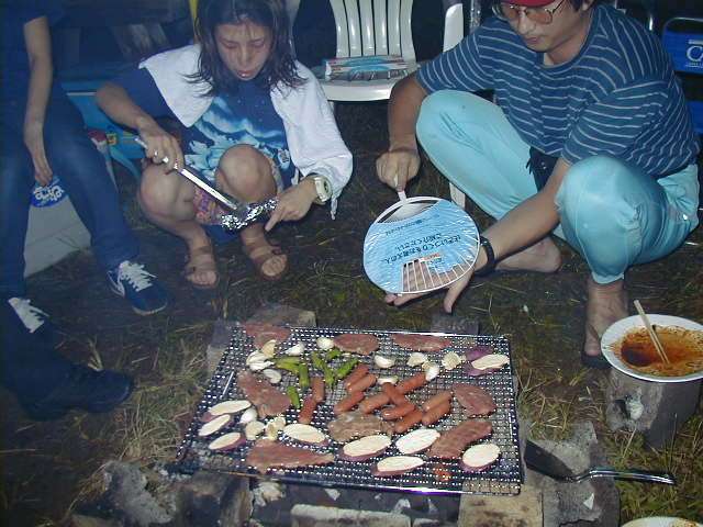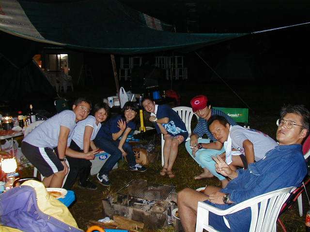 バーベキュー&ドリンクタイムには、雨も上がり一安心の中、話が弾みました。その後、風も吹いたり、雷雨となり
