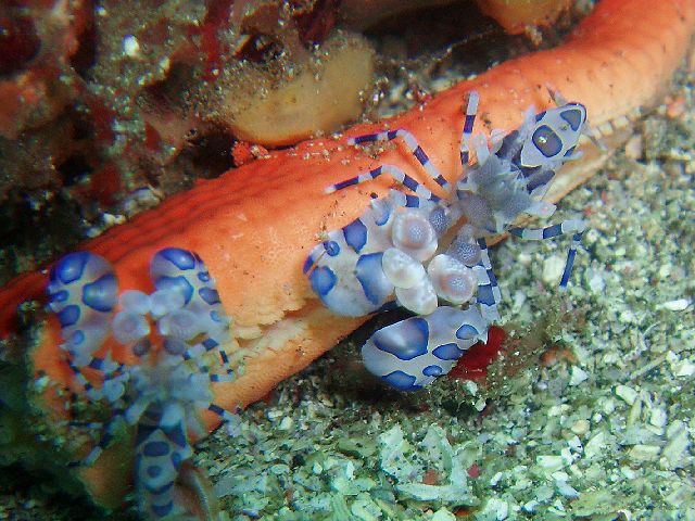 ・今週は富戸の紹介 2007年7月28日 ・天気 曇り後晴れ ![]() ![]() ・気温 31℃ ・水温 19〜22℃ ・波高 0.0m ・風 西(3) ・透視度 6m〜8m ・コメント べたっとした静かな海でした。 岩場では、キミシグレカクレエビ、イセエビ、カザリキンチャクエビ、 クマノミと卵、コアジの群、ニシキウミウシ、ミツボシクロスズメダイ などが楽しめました。 砂地は、アオリイカの産卵がまだまだ頑張っていて見られました。 他にミジンベニハゼ、イネゴチ、ヒフキヨウジ、ハナハゼ、ダテハゼと テッポウエビの共生、ヨコシマクロダイ、ミノカサゴ(yg)、 ムレハタタテダイ(3匹)など。 お互いかみ合い、背鰭を目一杯ひろげ たり、なかなか勝負がつかない、ヤマドリのケンカも見られました。 じっくりと見入ってしまいました。(笑) 昨日からカミソリウオなどが行方不明に(^^;)また、すぐに 出てきて欲しいですね。 |