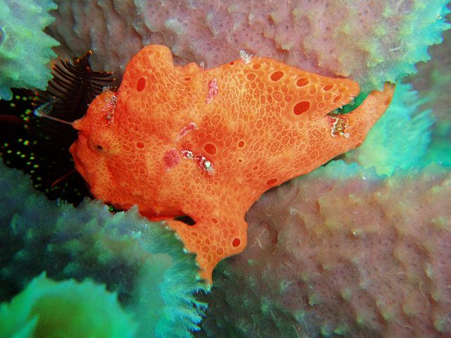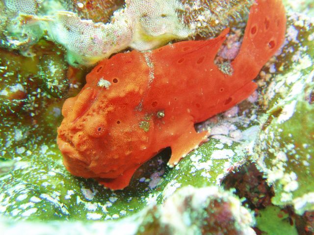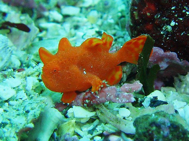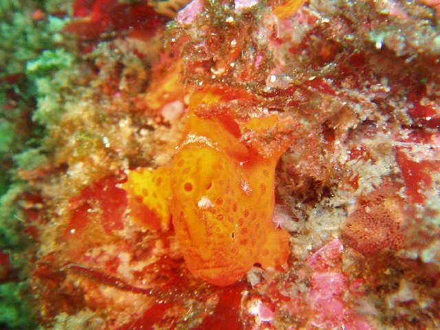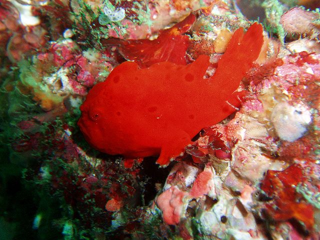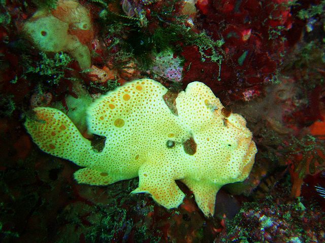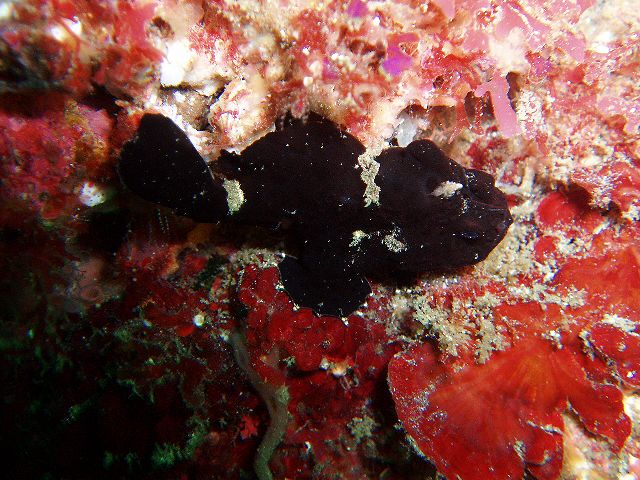 ・今週は富戸の紹介 2007年12月16日 ・天気 晴れ ![]() ・気温 11℃ ・水温 17〜8℃ ・波高 0.5m ・風 東(2) ・透視度 10m〜20m ・コメント 午後から少し濁ってきましたが、問題なく良い海です。 イロカエルアンコウ(×3)、ハナタツ、ナンヨウツバメウオなどの 人気者を見て来ました。他にもアジの群やタカベの群など綺麗です。 残念なのはフリソデエビのエリアが荒れていたことです。 見たいのは分かりますが、そこら中の石を動かすのはやめて貰いたいものです。 |