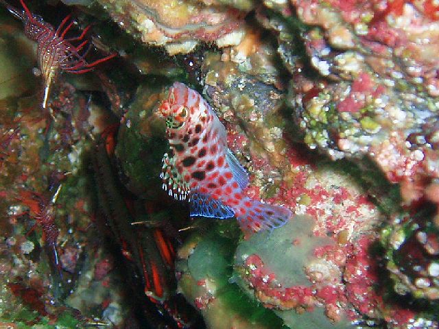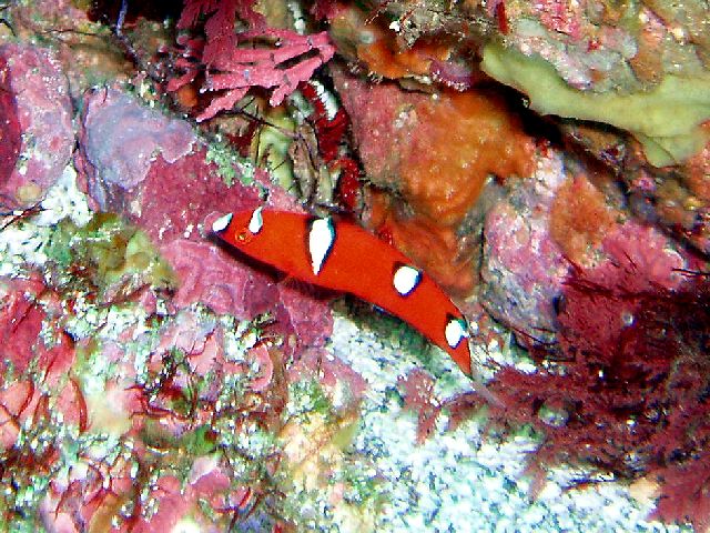 ・今週は富戸の紹介 2007年4月1日 ・天気 晴れ ![]() ・気温 24℃ ・水温 15℃ ・波高 0.5m ・風 西南西(14)→南西(2) ・透視度 5m〜8m ・コメント ダンゴウオを探しに行くも撃沈? 小さすぎて見えません。 陸は快適な富戸です。オトメベラ(ボロボロです)、クロイトハゼ、 オルトマンワラエビ、イボイソバナガニなど小物も楽しめました。 他に、キビナゴの大群、ベニカエルアンコウ、クマノミ、オオモンハタ、 マツカサウオ、ホウボウ、シビレエイ、タヌキベラなども。 |