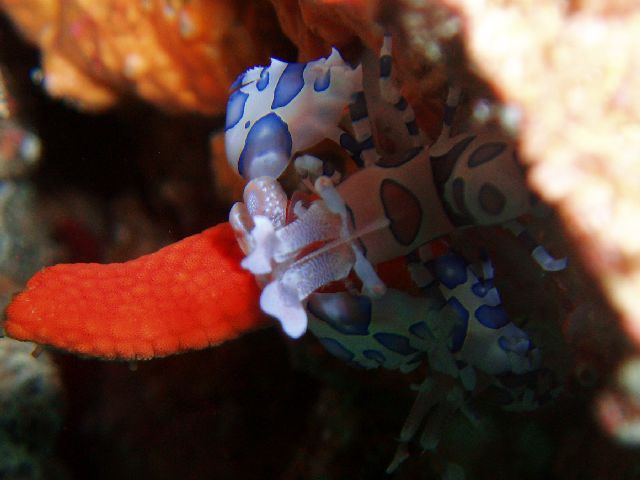・今週は富戸の紹介 2007年12月5日 ・天気 晴れ ![]() ・気温 15℃ ・水温 19℃ ・波高 0.0m ・風 西南西(3) ・透視度 15m〜20m ・コメント フリソデエビに誘われて行ってきました。 まだいたけど、いつまでいるかな〜(^^;) そんな中、小物はというと、イロカエルアンコウ、ベニカエルアンコウが 健在!コガネキュウセン、ネジリンボウ、オヤビッチャ、クマノミ、ミツボシ クロスズメダイ、コガシラベラ、オトメベラ、ムスジコショウダイ。 浅場には、ナンヨウツバメウオ、カスミアジなどもいて楽しい海でした。 |