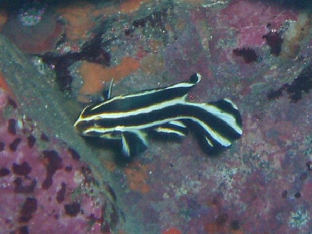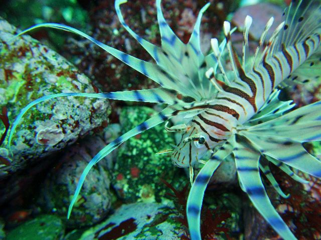 ・今週は富戸の紹介 2007年2月2日 ・天気 晴れ ![]() ・気温 9℃ ・水温 15〜16℃ ・波高 0.0m ・風 西南西(4) ・透視度 15m ・コメント 透明度の良い海です。砂地には大きなヒラメがで〜んといました。 岩場は、ミナミハコフグ、ベニイザリウオ、クマドリイザリウオ、 マツカサウオ、オオウミシダトウマキクリムシ、ニシキウミウシ、アオウミウシなど小物天国です。この近くに他の小物も沢山 いるらしいです。(笑)でも、ちょっと遠いのでもう少し手前で楽しみたいものです。 |