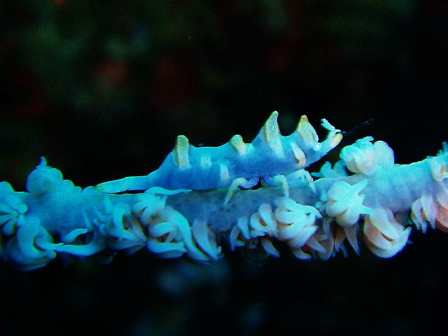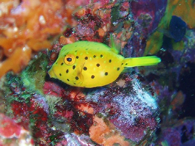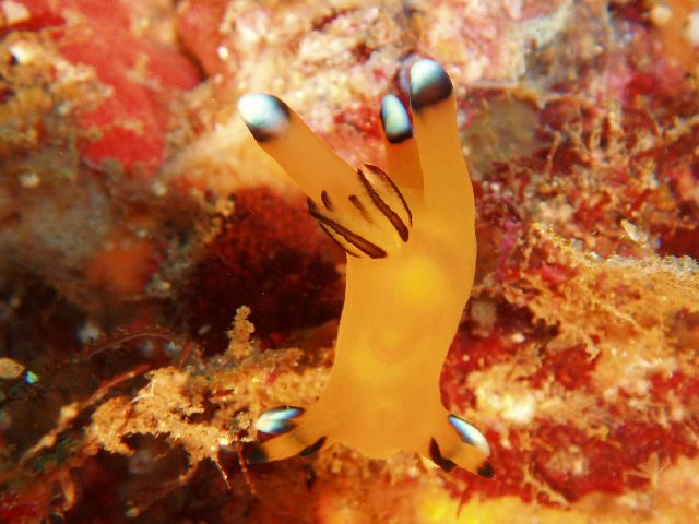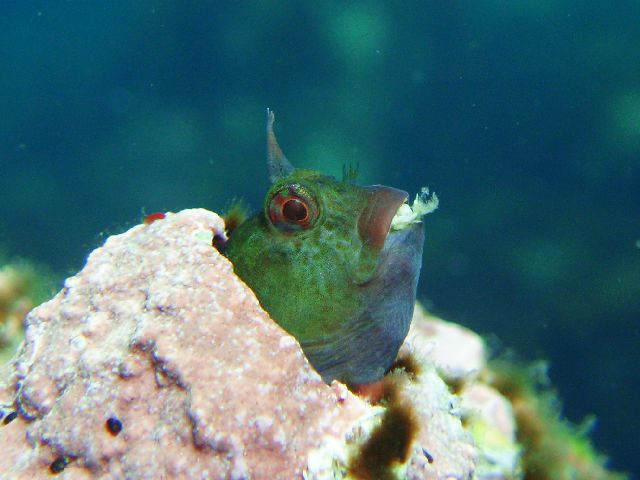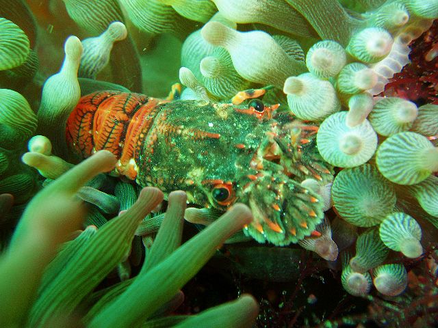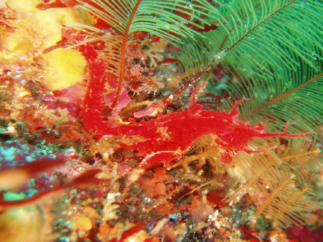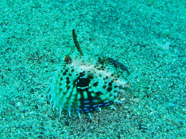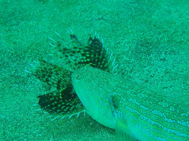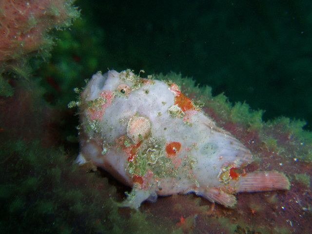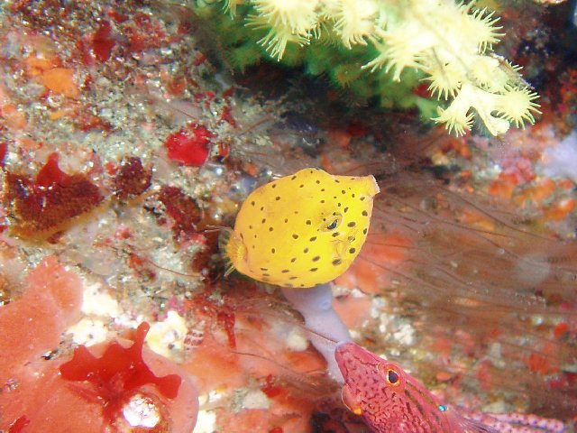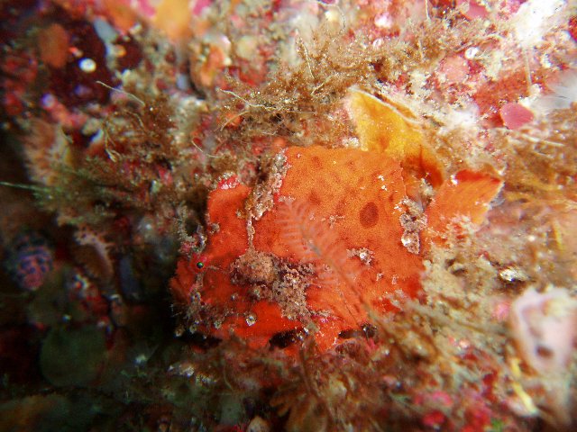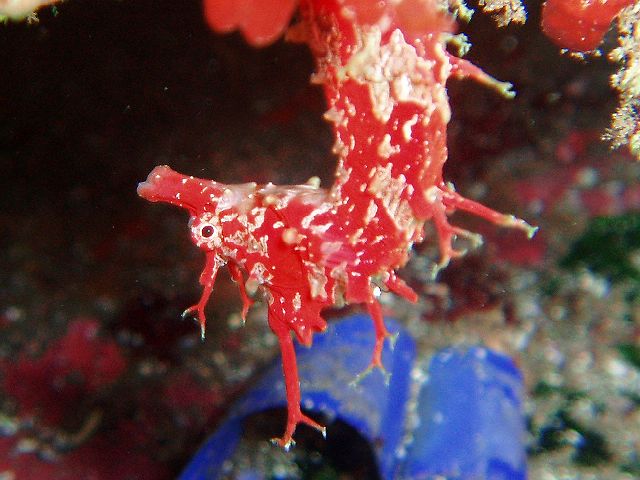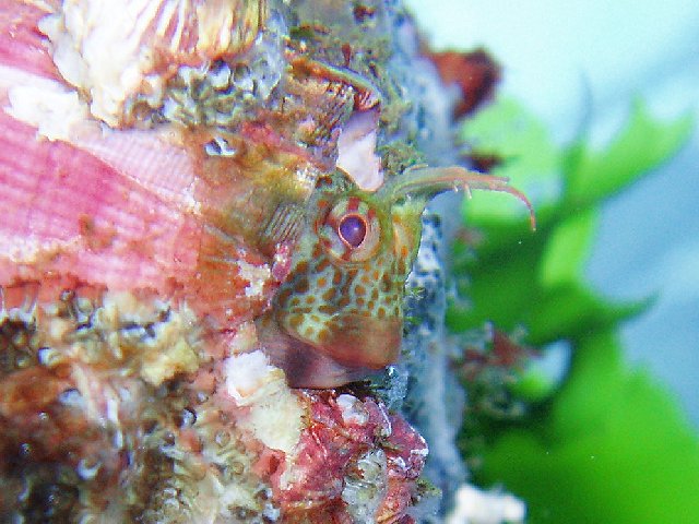 ・今週は富戸の紹介 2007年5月4日 ・天気 晴れ ![]() ・気温 26℃ ・水温 15〜16℃ ・波高 0.0m ・風 西南西(8) ・透視度 8m〜12m ・コメント 砂地のダンゴウオ(大・小)、イネゴチ、ホウボウ、タツノイトコ、 ヨウジウオなどに岩場のベニカエルアンコウ(×3)、オオモンカエルアンコウ、 マツカサウオ(×2)、クマノミ、イボイソバナガニ、ケラマハナダイ、 ミナミハコフグなど楽しめました。それにウミウシ多いです。 ムカデミノウミウシ、シロウミウシ、アオウミウシ、サラサウミウシ、 スミゾメミノウミウシなど。20mを越えると透明度かなり良くなっています。 今の富戸は面白いです〜! |