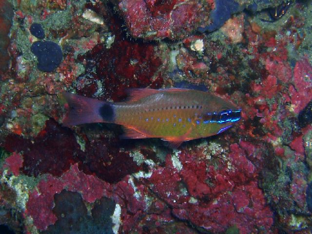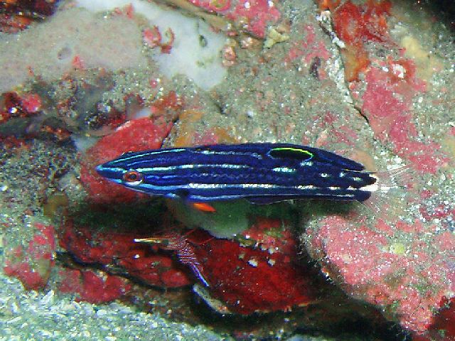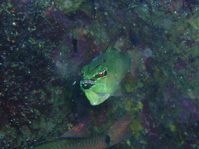 ・今週は富戸の紹介 2007年9月12日 ・天気 雨後曇り ![]() ![]() ・気温 22℃ ・水温 23〜4℃ ・波高 1.0m ・風 北北東(3) ・透視度 6〜10m ・コメント 昨日と同じ様な感じですが、午後から風が吹いて波も出てきました。 そんな中、三岩方面へ行くとムレハタタテダイがかなり集まって 来ていました。他にアジの群、アオリイカの群、コロダイ(yg)が沢山、 アジアコショウダイ(yg)、コガシラベラ(yg)、オトメベラ(yg)、シコクスズメダイ(yg)、 アカヒメジなど多数の季節来遊魚が見られました。 明日はどうでしょうか? |
