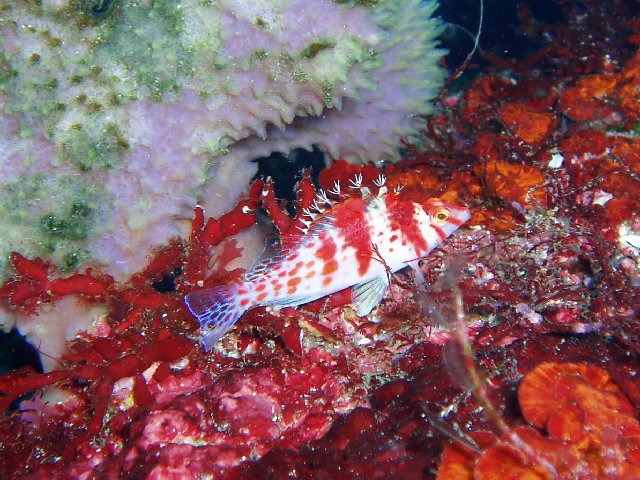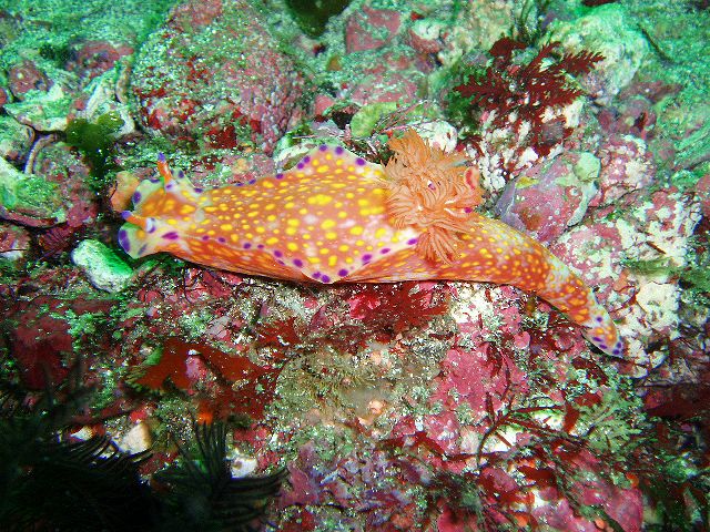 ・今週は八幡野の紹介 2007年12月6日 ・天気 晴れ ![]() ・気温 12℃ ・水温 19℃ ・波高 0.0m ・風 東北東(2) ・透視度 15m ・コメント エントリー近くにいるミカヅキツバメウオも元気でした。 イロカエルアンコウは3個体、それぞれ綺麗な色でした。 他にアカホシカクレエビ、イソギンチャクモエビ、 ムカデミノウミウシなどの小物も楽しめました。 透明度も良く、浅場ではアオリイカやギンガメアジの群などが 綺麗に見られました。 |
