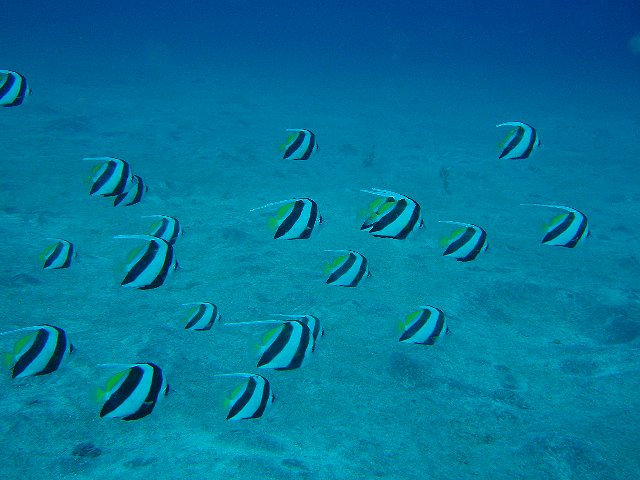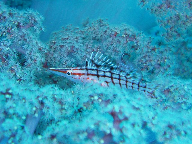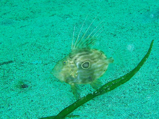 ・今週はIOPの紹介 2007年8月24日 ・天気 晴れ ![]() ・気温 31℃ ・水温 19〜23℃ ・波高 0.5m ・風 南西(3) ・透視度 10m ・コメント ピンポイントに魚がいました。ニシキフウライウオ、カミソリウオ(ペア)、 ヒトヒキアジ、イロカエルアンコウ(極小)、ベニカエルアンコウ、ノコギリヨウジ、 アジの大群、イサキの群、アオリイカの産卵、ジョーフィッシュ、クマノミ、 アジアコショウダイ(yg)、コロダイ(yg)、マツカサウオなど 本当に楽しい海です。 |