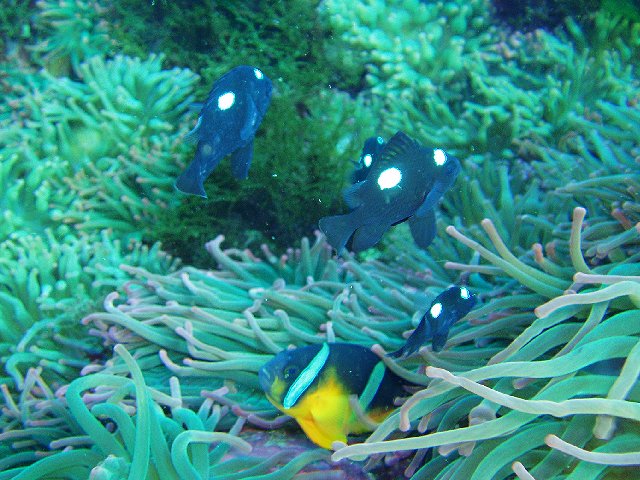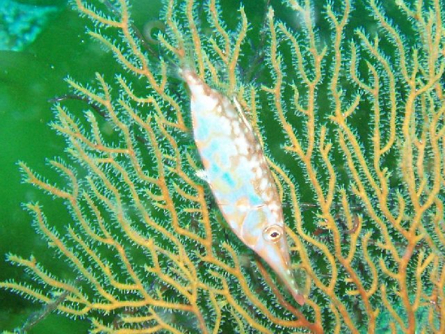 ・今週は富戸の紹介 2007年1月7日 ・天気 晴れ ![]() ・気温 11℃ ・水温 15℃ ・波高 0.0m ・風 西南西(11) ・透視度 15m ・コメント 強風の富戸でしたが、海の中は快適です。 クマノミ、ミツボシクロスズメダイ、ミナミギンポ、 オヤビッチャ、ツノダシ、ムレハタタテダイなど元気でした。 透明度も良く、タカベ、アジなどの群も綺麗でした。 他に、ホウボウ、ベニイザリウオ、コロダイ(yg)、クダゴンベなど。 |