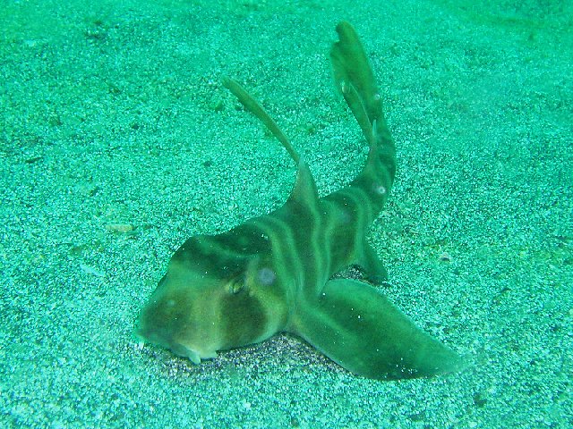 ・今週は富戸の紹介 2007年7月23日 ・天気 曇り後晴れ ![]() ![]() ・気温 27℃ ・水温 20〜22℃ ・波高 0.5m ・風 南南西(1) ・透視度 6m〜15m ・コメント 今日は、講習で少し深い所へ行ってきました。浅瀬に比べてかなり 透明度が良くなっていました。 砂地ではサカタザメ、テンス、スジコウイカ、ハナハゼ、 カンパチの群。岩場ではオオモンカエルアンコウ、ベニカエルアンコウ、オトメベラ、 クマノミ、ミツボシクロスズメダイなど楽しめました。 |