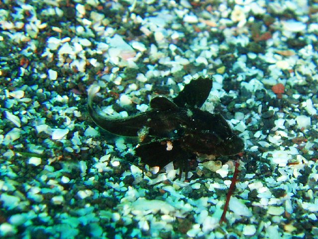 ・今週は富戸の紹介 2007年12月20日 ・天気 晴れ ![]() ・気温 9℃ ・水温 17℃ ・波高 0.5m ・風 北北東(3) ・透視度 10m〜20m ・コメント ソウシカエルアンコウを見に行ってきました。その後は、久々の砂地方面へ。 ホウボウ、トビエイ、アジの群、ムレハタタテダイの群、タカベの群と 楽しめました。フリソデエビは2カ所で確認出来ました。テトラ方面の イロカエルが居なくなった?皆さん、ムキになって荒らさないように・・ |
