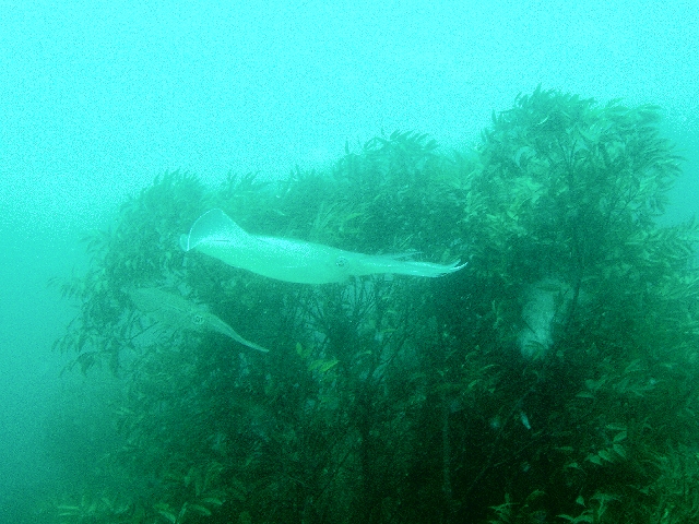 ・今週は富戸の紹介 2007年5月23日 ・天気 晴れ ![]() ・気温 24℃ ・水温 18℃ ・波高 0.0m ・風 東(3) ・透視度 6m〜8m ・コメント 最近、透明度が良くなったり悪くなったりと日替わりです。 砂地は意外と明るく、楽しめました。定番のダンゴウオ(かなり でかくなっています)、その近くにテンス、サギフエ、サカタザメ、 ヒラタエイ、カエルアンコウと見られました。 アオリイカの産卵ですが、もう 集まってきています。10杯以上来ていたようです。水温も上がって きていますので、そろそろウエットスーツでも大丈夫かも。 |