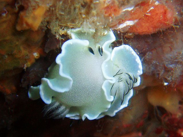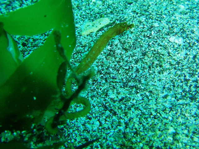・今週は富戸の紹介 2007年5月12日 ・天気 晴れ ![]() ・気温 19℃ ・水温 18〜19℃ ・波高 0.0m ・風 東(3) ・透視度 6m〜10m ・コメント 午後から濁った潮が入ってきました。そのお陰で19℃? 水温が高く表示されました。砂地のダンゴウオ、サギフエは健在。 岩場のベニカエルアンコウ、クマノミも見られます。 濁っているので、魚は、多いような気がするのですが、見えません(^^;) そうそう、ウミウシも多く見られました。 人に教わってスナビクニンを見てきましたが、目が良くないと 見えませんね。虫メガネでもはっきりしなかった(悲)ピンボケだけど 写真載せてしまいました。(笑) |