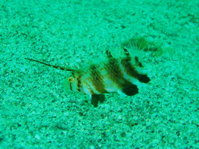 ・今週は富戸の紹介 2007年5月16日 ・天気 晴れ ![]() ・気温 21℃ ・水温 18〜19℃ ・波高 0.0m ・風 東南東(2) ・透視度 8m〜12m ・コメント 思っていたより透明度が良くなっていて感激。 砂地の白さが綺麗でした。ダンゴウオ、ホウボウ(子供)、 ミノカサゴ、イネゴチにハナハゼ、ダテハゼが多数出てきて いました。岩場では、ベニカエルアンコウ(×3)、 クマノミ、ミズヒキガニなど。でっかいヒラメをゲストと 一緒に比べるように撮ったのですが、見事失敗。スミマセン。 |