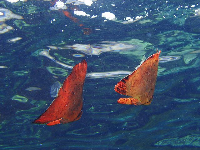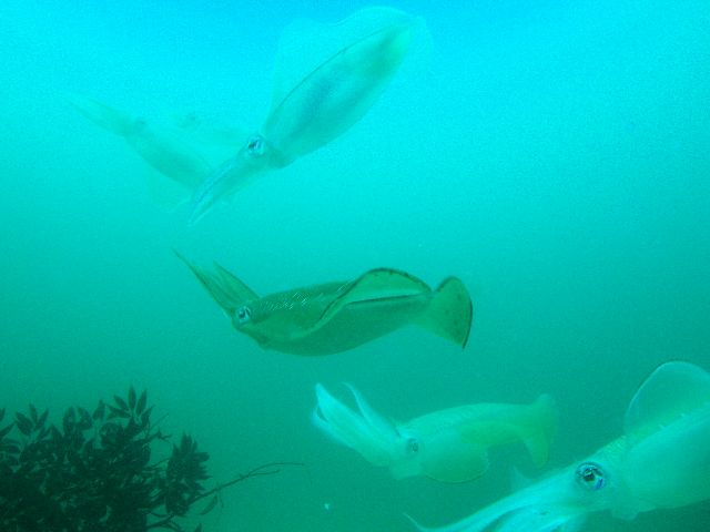 ・今週は富戸の紹介 2007年8月1日 ・天気 晴れ ![]() ・気温 28℃ ・水温 21〜24℃ ・波高 0.0m ・風 南(1) ・透視度 8m〜15m ・コメント 水温が急上昇?アオリイカの産卵がもの凄いことに!半端じゃない 数が集まり産卵していました。透明度も抜けていて産卵床全体が 見渡せたのも凄かった。他に、サバの群を追いかけ回すワラサ2匹や アジ、イワシ、ムツ、クロホシイシモチなどの群も綺麗に見えます。 砂地にはヒラメ、セミホウボウ(yg)×2、ヨウジウオ、ヒフキヨウジ、 クロイトハゼ、オニオコゼ、カエルアンコウ(大)など。楽しめました。本当に凄い海でした。 南系もツノダシ、ニセカンランハギ、オジサン、ヨコシマクロダイなど 多数出現中。定番、ベニカエルアンコウやクマノミも勿論楽しめました。 明日は何が見られるか楽しみです。 |