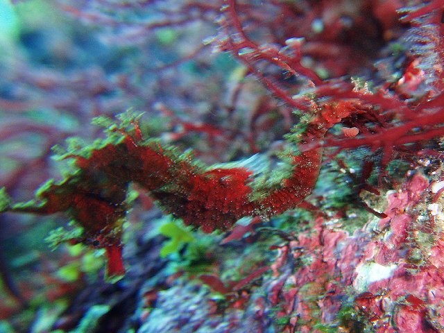 ・今週はIOPの紹介 2007年5月15日 ・天気 晴れ ![]() ・気温 21℃ ・水温 18℃ ・波高 0.5m ・風 西北西(3) ・透視度 6m〜8m ・コメント 波もなくエントリーエキジットも快適です。 砂地のダンゴウオを探しに行ったら、見事に見つからず! でも、タツノイトコ、ヤマドリなど楽しめました。 岩場では、タツノオトシゴ、クマノミ、コブダイ(大・幼)、 ノコギリヨウジ、ウバウオ(多数)、 ムカデミノウミウシなども見られました。 |