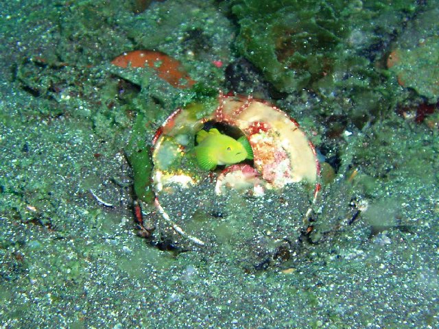 ・今週は富戸の紹介 2007年4月30日 ・天気 晴れ ![]() ・気温 22℃ ・水温 15℃ ・波高 0.0m ・風 北東(1) ・透視度 10〜12m ・コメント 昨日に続き、波のない穏やかな富戸の海でした。 岩場では、マツカサウオ(×2)やオオモンカエルアンコウ、ベニカエルアンコウ(×2) にサラサウミウシ、ハナミドリガイなど。砂地では、ダンゴウオの大小が見られました。 他に、スジコウイカ、セミホウボウ、キビナゴの群なども綺麗。 透明度が良くて気持ちの良いダイビングになりました。 |