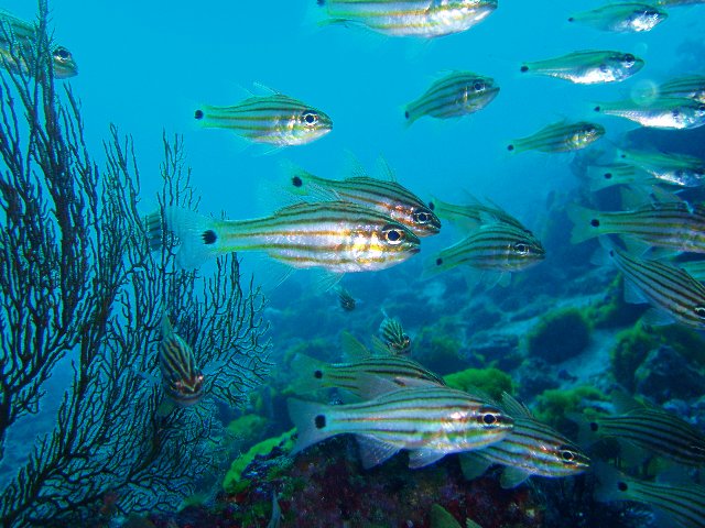 ・今週は富戸の紹介 2007年12月9日 ・天気 晴れ ![]() ・気温 13℃ ・水温 18℃ ・波高 0.0m ・風 西南西(2) ・透視度 15m ・コメント キビナゴやイワシを追ってイナダが集まっていました。 小物は、フリソデエビやネジリンボウの最近人気のものが見られました。 他に、ベニカエルアンコウ、クマドリカエルアンコウ、イソギンチャクエビ、 アオスジテンジクダイ、テンクロスジギンポ、アジの大群など楽しめました。 |