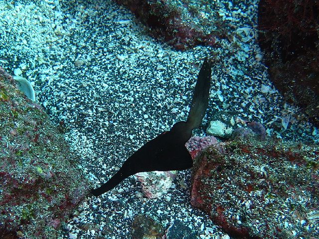 ・気温 32℃ ・水温 26℃ ・波高 0,5m ・風 南東(2) ・潮 干潮 11:20 (30) 大潮 ・流れ なし うねり 少しあり ・透視度 10m ・コメント 「 季節来遊魚探しなのだが(^^;) 」 |
