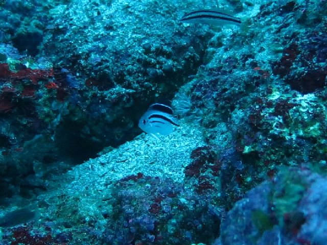 ・気温 32℃ ・水温 22℃〜27℃ ・波高 0,0m ・風 南南東(2) ・透視度 8m〜15m ・コメント 「 深場には冷たい潮が 」 |