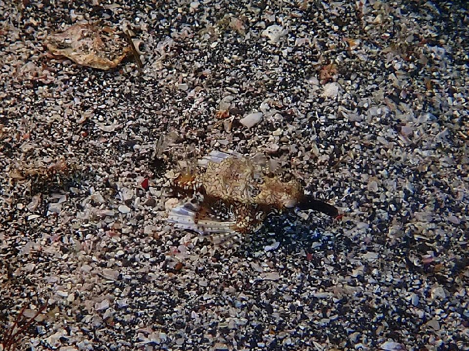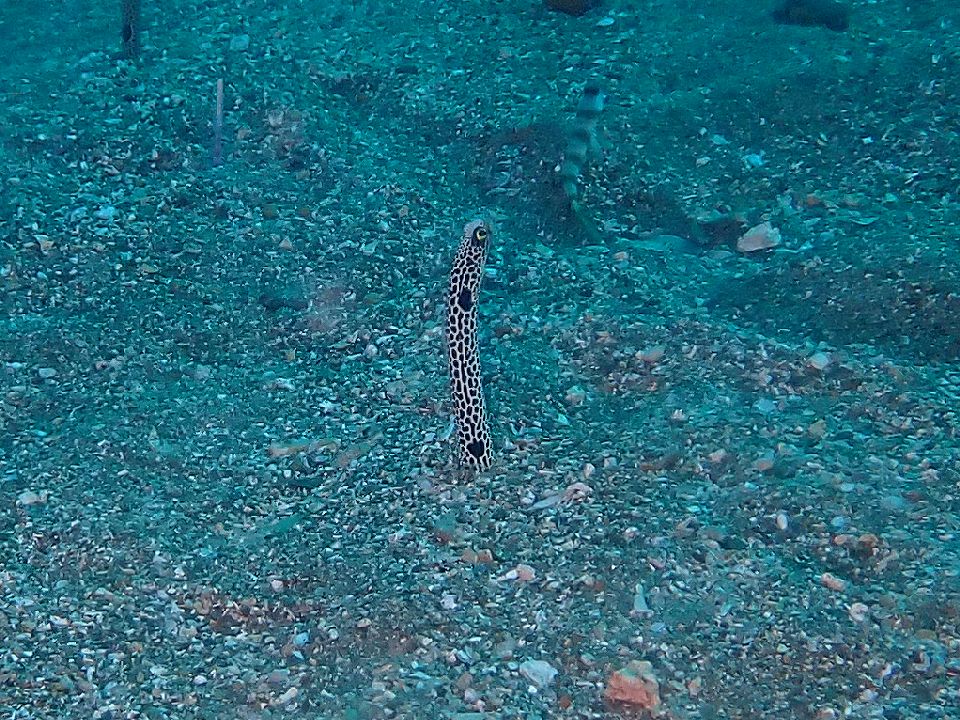 ・気温 24℃ (12:00) ・水温 19℃〜21℃ ・波高 0,3m(EN/EX) 沖波 1,5m ・風 東北東 2m/s (12:00) ・潮 干潮 15:13(48cm) 満潮 08:01(122cm) 小潮 ・流れ 流れ あり うねり なし ・透視度 6m〜12m ・コメント いい海でした |