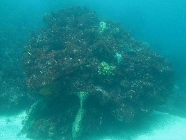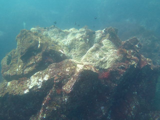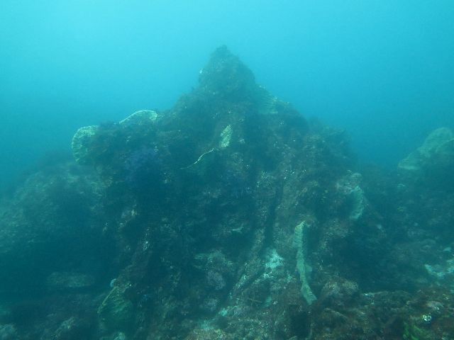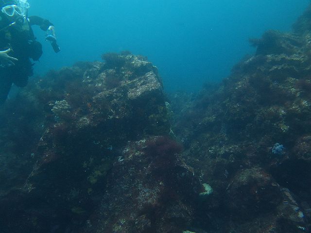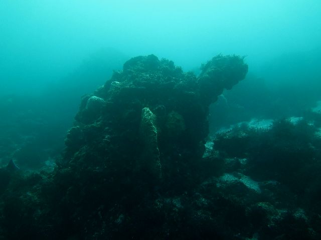 そびえ立つ岩の上にイソギンチャク 中腹の抜けられる所の岩